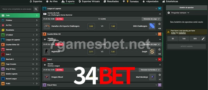 O 34bet oferece uma grande seleção de opções de apostas em e-sports com probabilidades competitivas